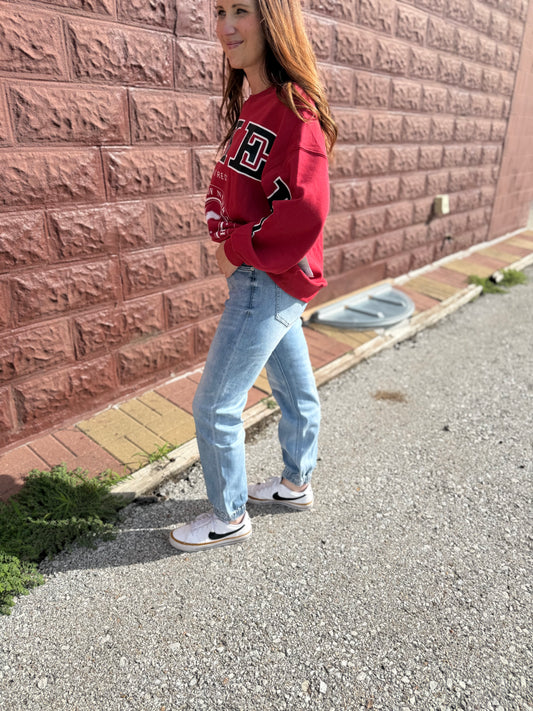 Crimson Rounded Bottom Corded Crew