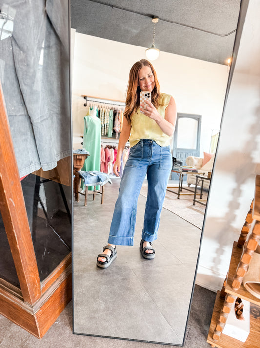 Vervet Hi Rise Raw Hem Wide Leg Jean