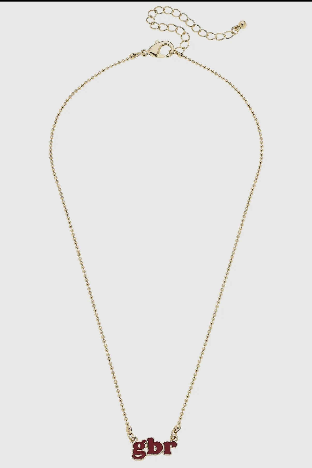 Show off your love for nebraska with our GBR Necklace! This playful and quirky accessory features a vibrant red enamel design of the GBR logo on a sleek ball chain.