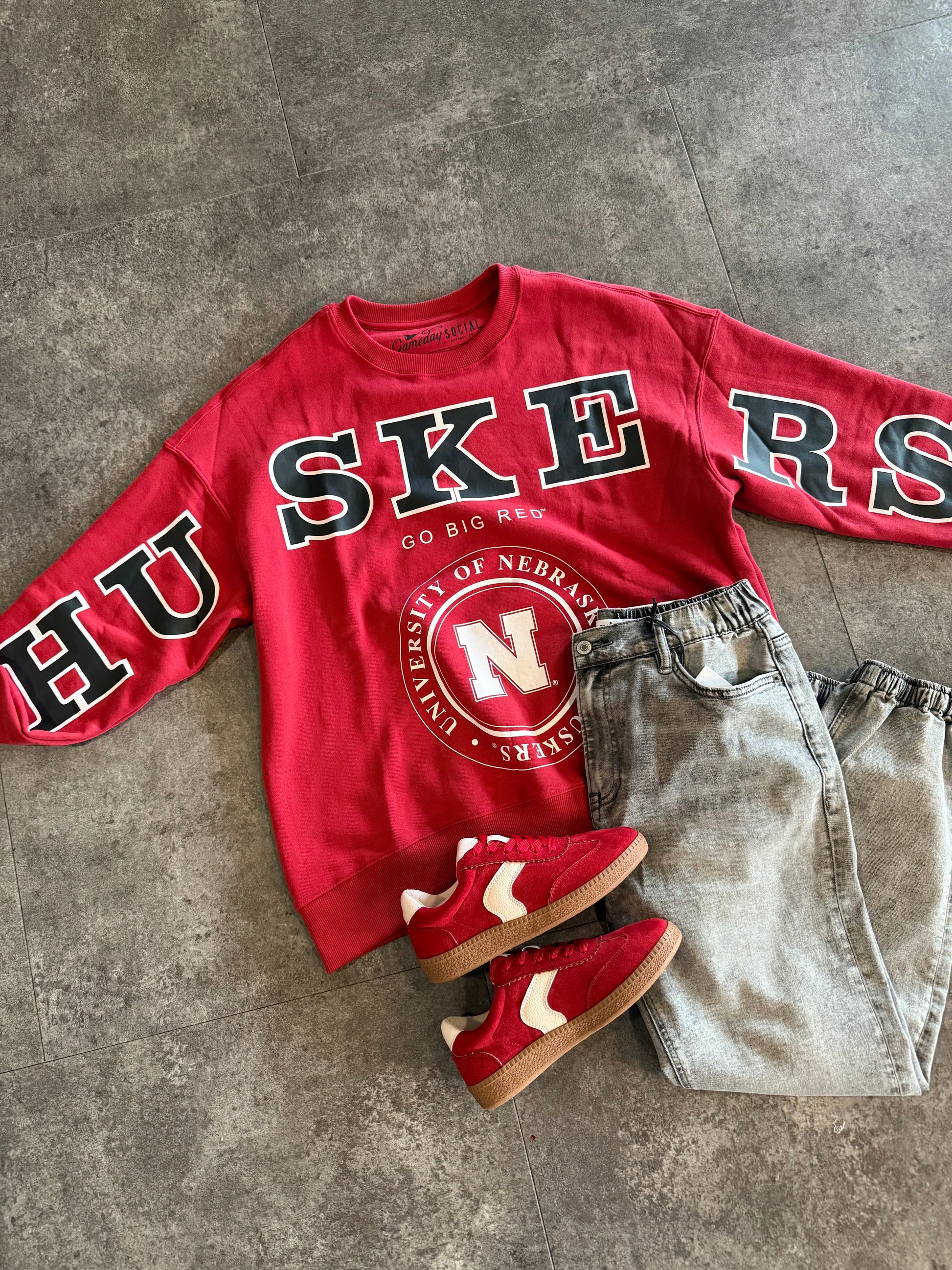 Get ready to add a touch of femininity to your crewneck collection with our Nebraska Philly Split Crew! Our Lantern Sleeve Crew features exaggerated sleeves and bold "huskers" lettering, making it the perfect addition for any game day outfit. Go big red!