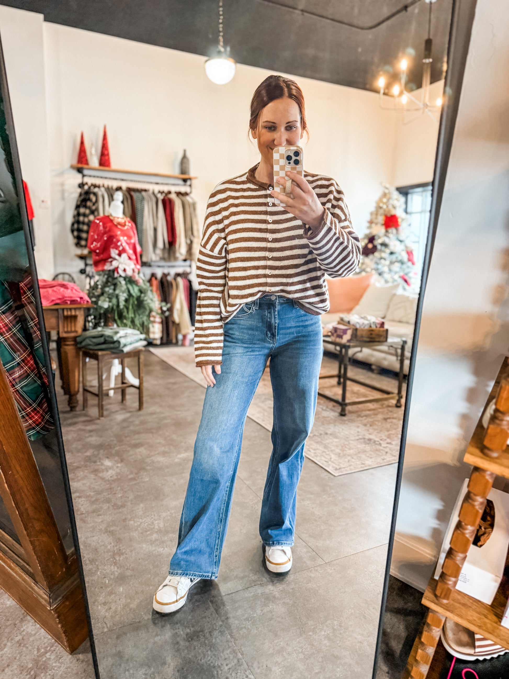 Introducing the Piper Cardigan, ready to make a statement and go viral in brown! This playful button-up features super soft fabric, white buttons, and an oversized, relaxed fit for both comfort and style. Wear it buttoned up or unbuttoned - just go with your true size!