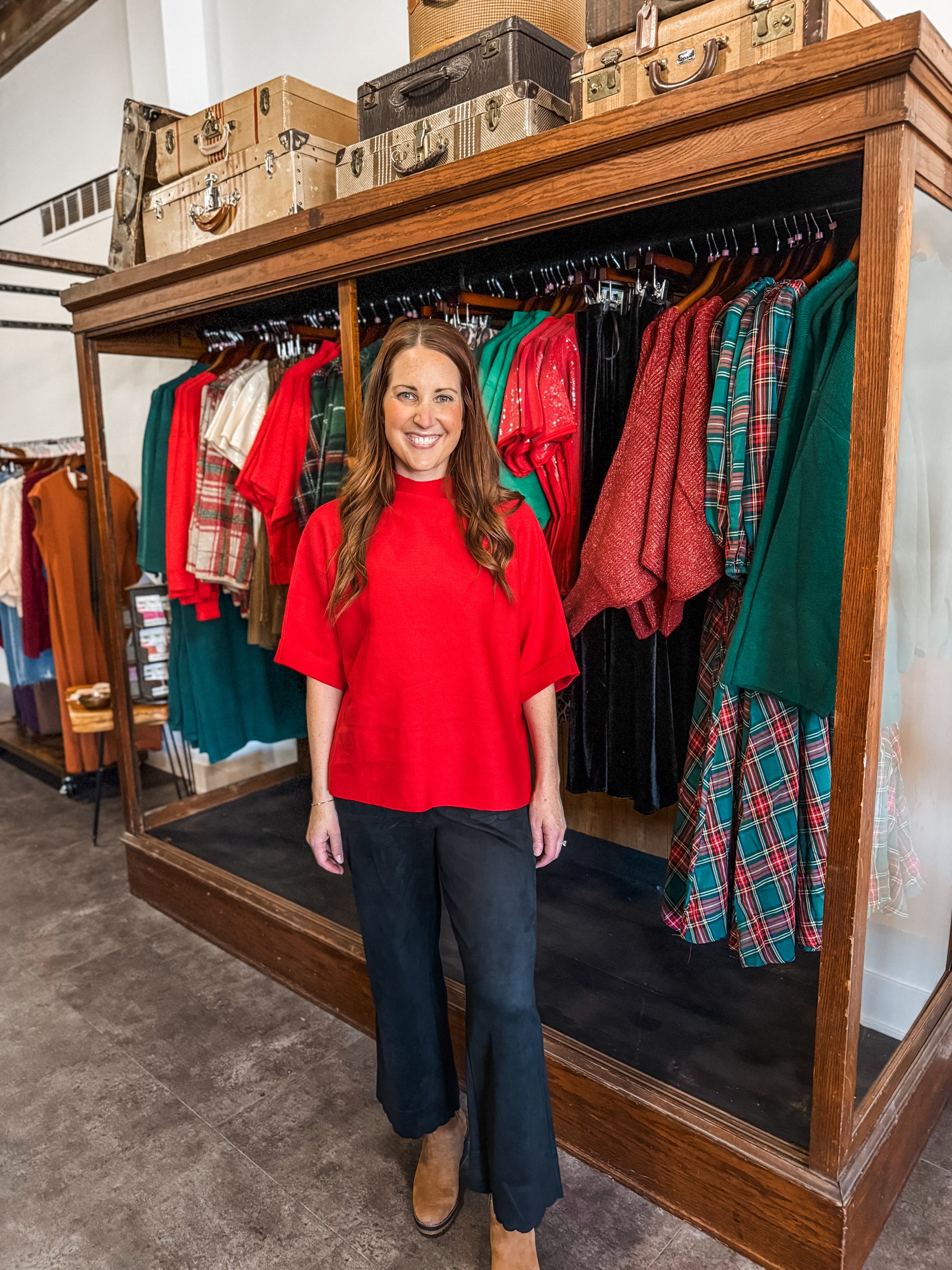 Get ready for the holidays with our Prepping For Merry Sweater! This soft, mock neck top features a drop shoulder design and unique side slit detail. Stay cozy and stylish all season long!