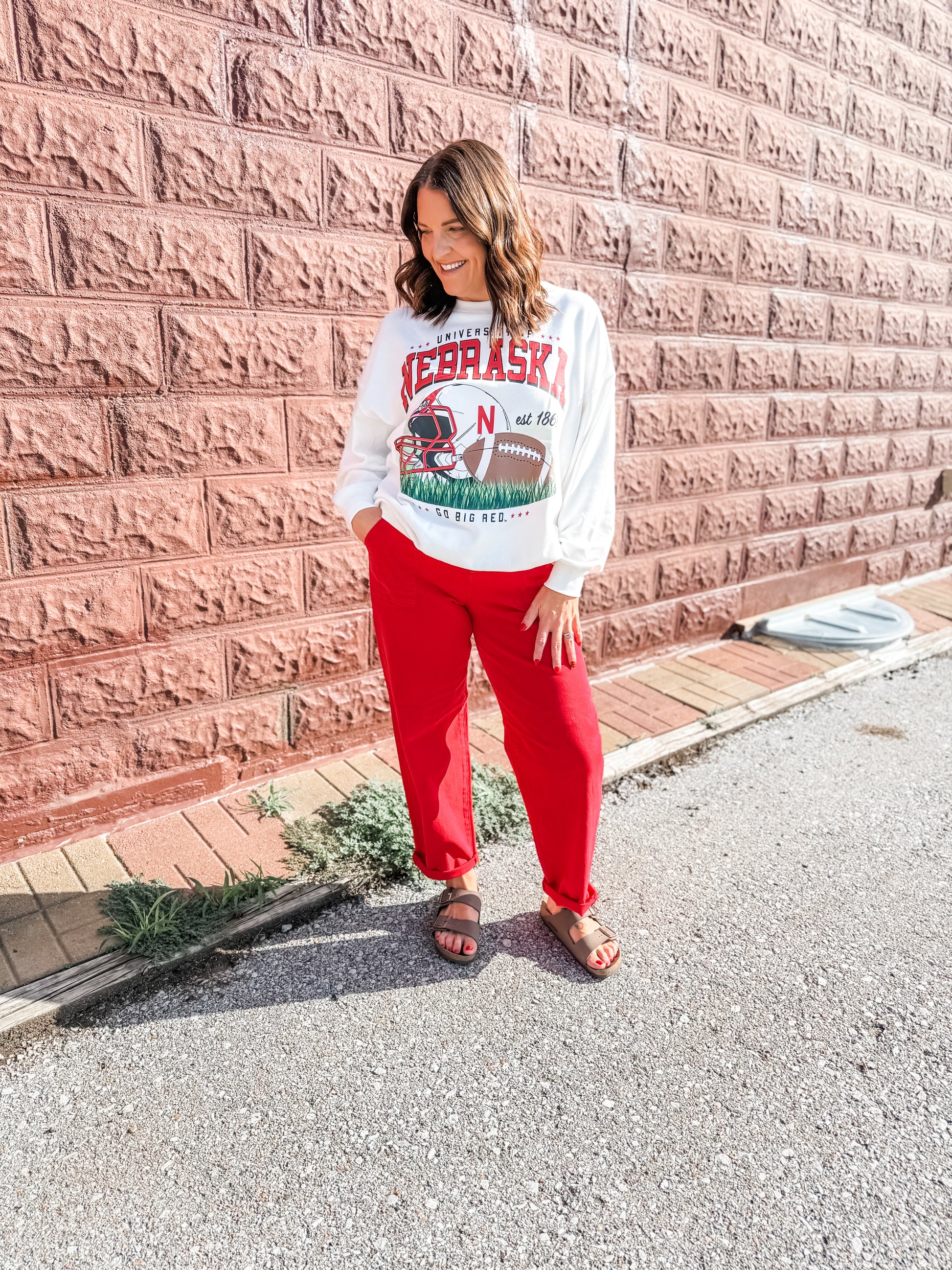 These Risen Barrel Jeans feature a hi rise design and stretch material for a comfortable fit. The ankle cuff adds a touch of style, with the option to release for a more relaxed look. In true red, these jeans are bold and versatile, perfect for any occasion.
